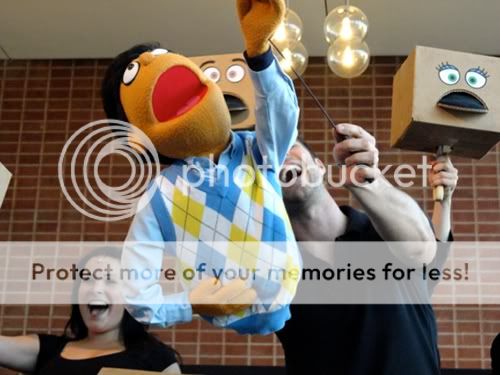 Neben den Spielplantrailern fand ich im Übrigen die Preview von Avenue Q. Ich mag dieses Musical ausgesprochen gerne, habe es aber eigentlich für unübersetzbar gehalten, weil es zum einen ein sehr amerika-spezifisches Thema hat, zum anderen sprachlich in der Originalfassung wirklich gut ist. Und ich muss sagen, ich war positiv überrascht. Klar, manches funktioniert überhaupt nicht, beispielsweise, wenn aus "The Internet is for Porn" einfach nur "Das Internet ist für Pornos" wird, aber andere Lieder wirken wirklich, wirklich gut. Ich werde mi das Ganze im April auf jeden Fall mal ansehen. Und weil Kind die Kamera dabei hatte, hier noch ein kleiner Eindruck für euch: